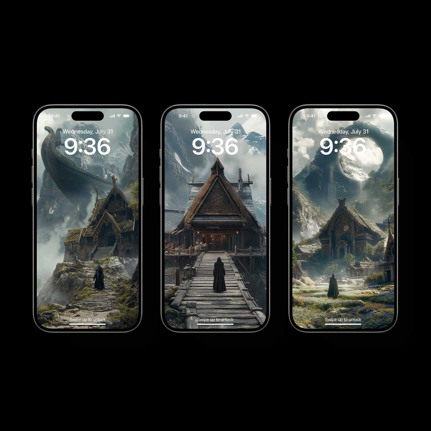 Three HD mobile wallpapers for iPhone and Android. A Norse saga within your reach.